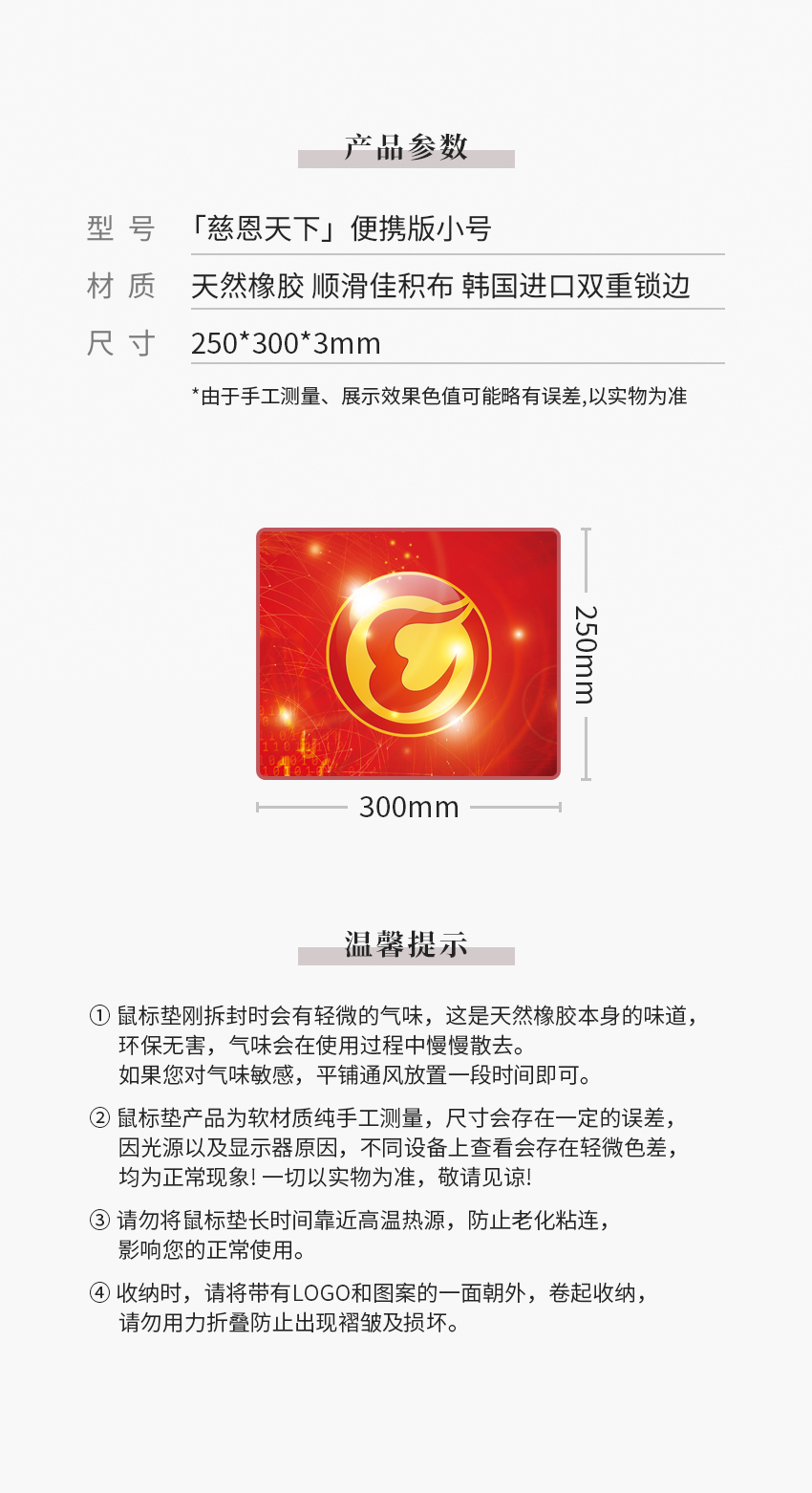 「天 地 祖」办公鼠标垫 顺滑细面橡胶 便携版小号 250*300*3mm