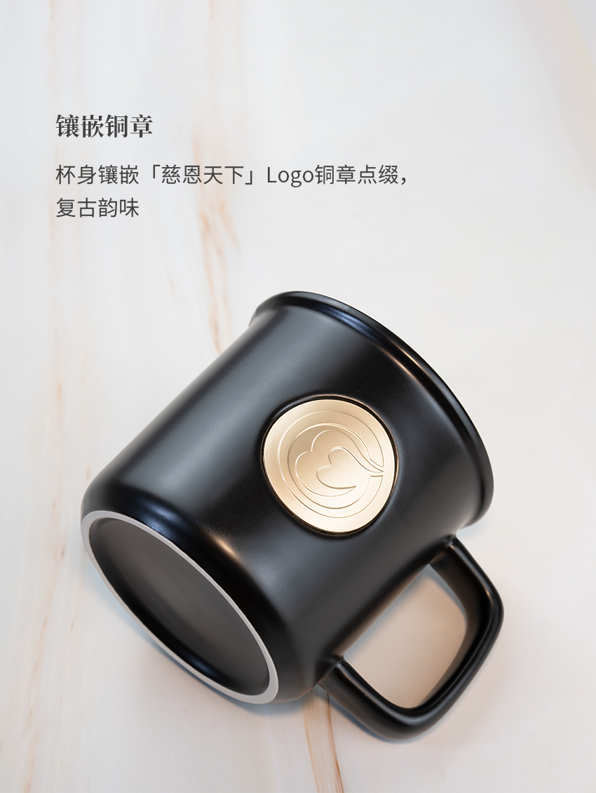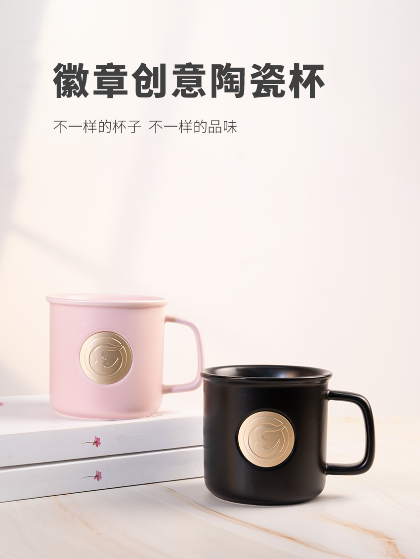 300ml「慈恩天下」徽章创意陶瓷杯 咖啡杯 水杯 粉色
